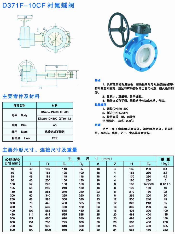 D371-10CF襯氟蝶閥