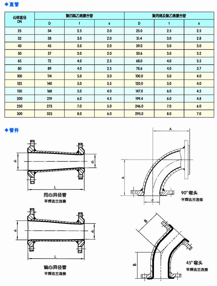 3.鋼與聚四氟乙烯或聚全氟乙丙烯復合管及管接件