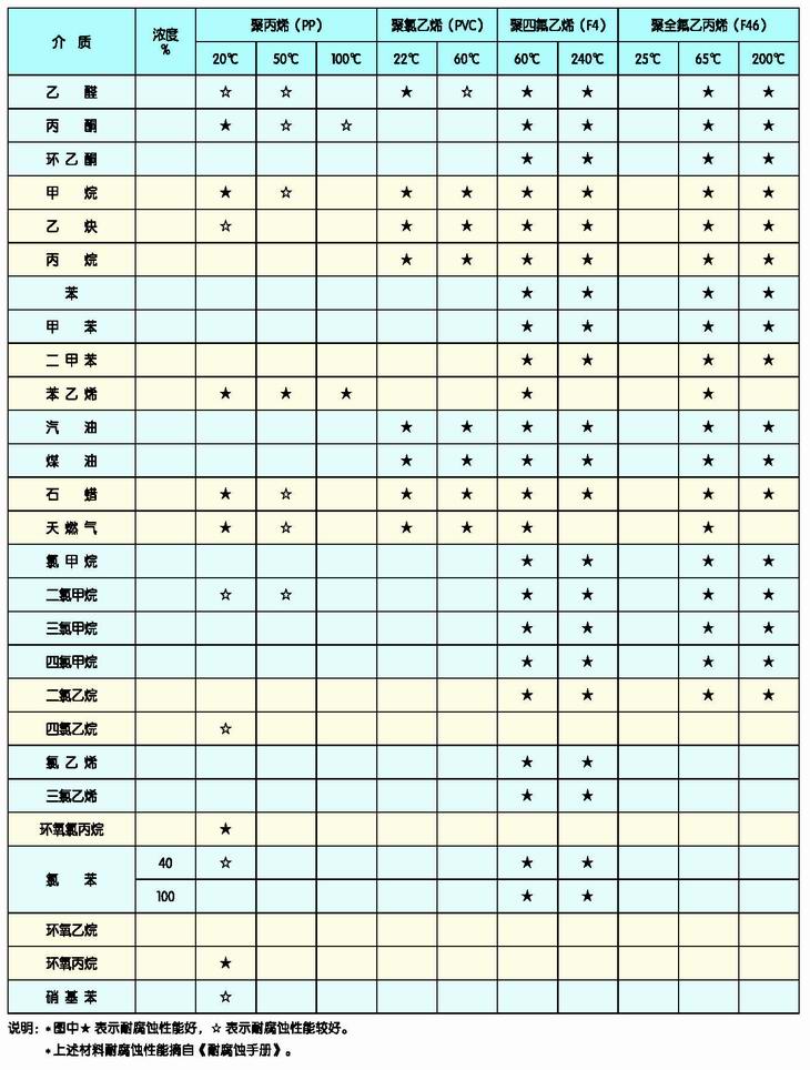 c. 耐腐蝕性能:除發(fā)煙硫酸、濃熱硫酸、硝酸等強氧化劑和90℃以下的酮、酯、胺類(lèi)以及高溫磺化劑外,能耐大多數有機酸及無(wú)機酸、氧化介質(zhì)、脂肪族的碳化物,醇類(lèi)和鹵素溶液的腐蝕。
